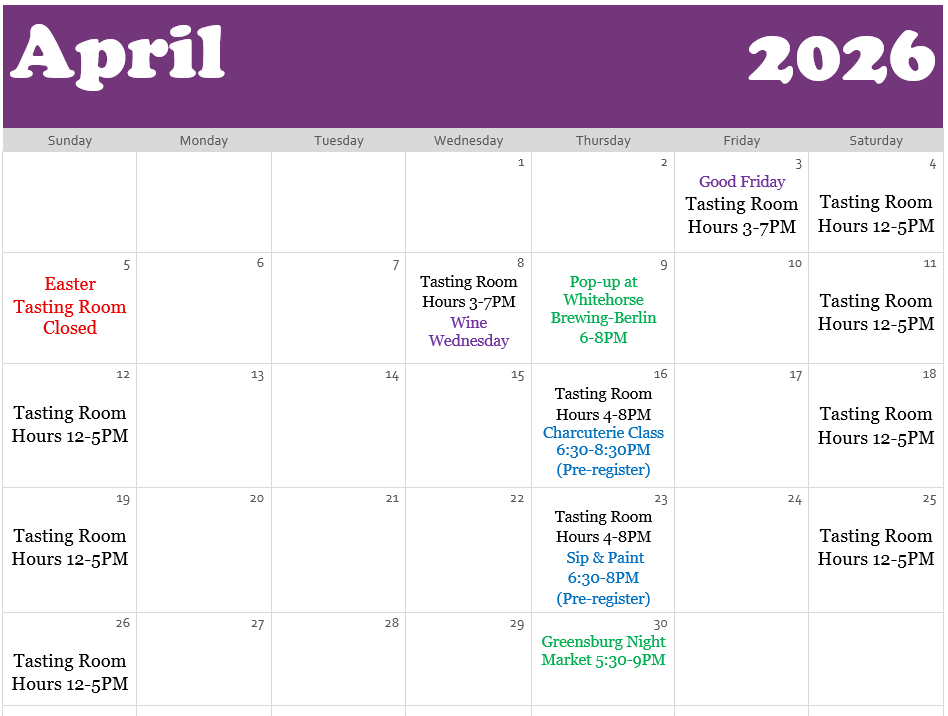 A craft winery producing wines full of flavor. We are dedicated to PA Agriculture, sourcing high quality local fruits. Come experience the taste and quality of our small batch wines.